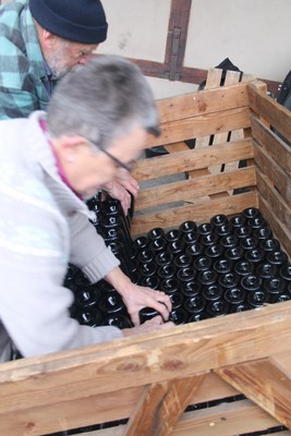 Avant le stockage, les bouteilles sont plusieurs fois retournées afin de bien homogénéiser la liqueur. Il ne reste plus qu’à étiqueter puis mettre le crémant au frais pour le déguster !